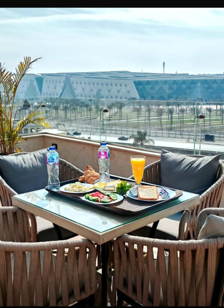 • A charming panoramic view: the Egyptian Museum and the glowing sky of Giza.